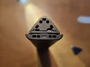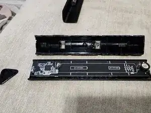 Вверху пульта при завершении разделения вы встретите некоторое сопротивление. Это потому, что глянцевая треугольная пластина сцепляется с ними. Аккуратно подденьте её (в ней нет электроники).