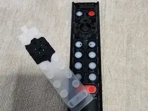 В результате пролитого сладкого напитка большинство кнопок стали липкими и хрустящими. Чтобы это исправить, я искал в сети руководство по разборке, но не нашёл подходящего. Поскольку я был готов заменить пульт на новый, я решил попробовать разобрать его сам.