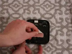 Вставьте лопатку в левую сторону Apple TV, затем обойдите вокруг и снимите основание.