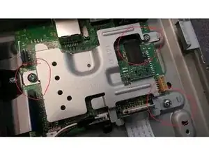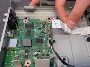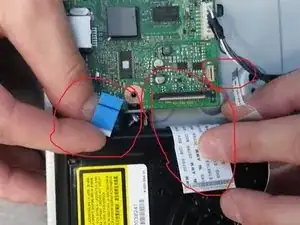 Далее извлеките все три ленточные перемычки, подключённые к оптическому приводу.
