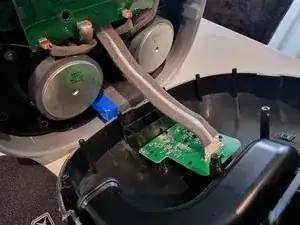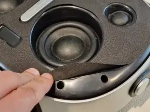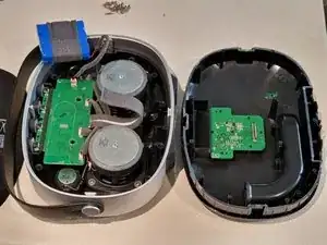 После того как вы удалите 13 винтов, вставьте палец в отверстие динамика на задней стороне колонки. Аккуратно потяните наружу, чтобы убедиться, что вы не сломали плоский кабель, соединяющий заднюю часть с основной платой. И это все! Теперь у вас есть полный доступ ко всем внутренним частям вашей колонки.