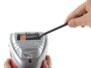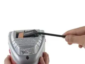 Используйте плоский конец лопатки, чтобы вытащить батарею.
