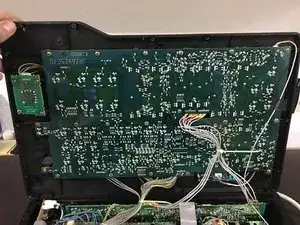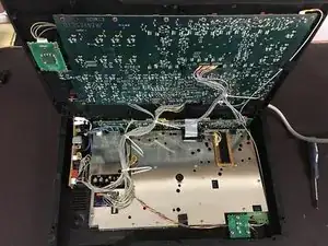 Теперь верхняя плата должна откинуться вверх, как крышка коробки для пиццы, открывая доступ к монтажной стороне верхней платы и экранировке ЭМИ как для основной силовой платы, так и для основной платы управления.