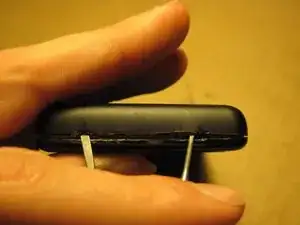 После того как первая отвёртка зашла внутрь (не вставляйте её слишком глубоко, там рядом батарея), используйте вторую отвёртку, чтобы отжать вторую защёлку. Желательно держать обе отвёртки в ZEN одновременно, как на фото 1. Вы заметите, что нижняя оболочка начала отделяться.