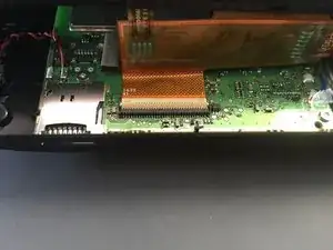 Будьте осторожны внизу, так как разъём экрана всё ещё подключён. Не пытайтесь полностью его снимать.