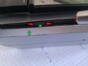 Чтобы поднять кромку, сдвиньте переднюю часть на этой стороне вбок, одновременно разводя обе части в стороны (внутренняя часть показана на шаге 5).