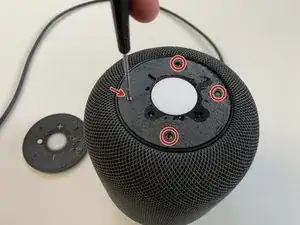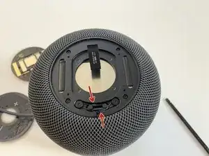 Снимите опорный диск сенсорной поверхности с HomePod.