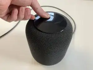 Поддерживайте динамик рукой с верхнего края HomePod.