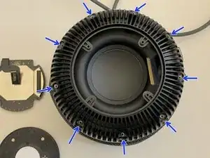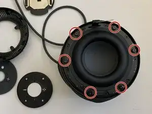 Выкрутите шесть винтов Torx T6, крепящих низкочастотный динамик.