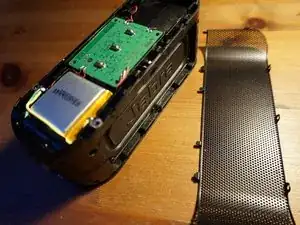 С верхнего края нужно ослабить 2x3 пластиковых защелки. С другой стороны, где располагается кнопка и USB-порт, вторая липкая лента удерживает верхний корпус.
