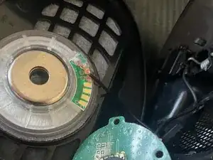 Плата громкости должна отсоединиться. Некоторые элементы клея могут удерживать ее; отклейте клей с помощью очень маленькой плоской отвертки, поддев ее от пластикового корпуса.