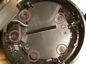 поднимите модуль динамика. обратите внимание, что металлический поворотный механизм можно удалить.