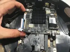Сдвиньте плату немного в сторону, чтобы открыть последнее соединение.