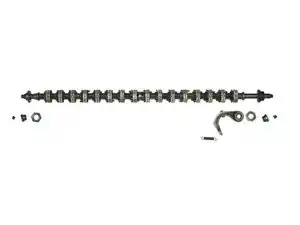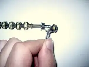 Продолжая поднимать правую сторону вала, поверните вал так, чтобы кулачок на левой стороне зацепил штифт.
