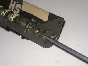 Вставьте плоскую отвёртку 1/8" в каждую из указанных двух шлицевых головок винтов с правой и левой стороны каретки одновременно.