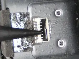 Отключите батарею. См. шаг 4 руководства RDCC. Используйте лопатку, чтобы поддеть разъём и поднять его прямо вверх.