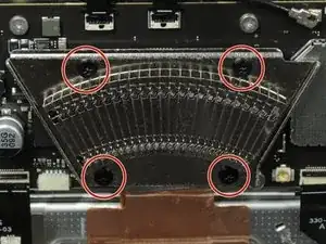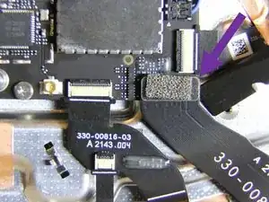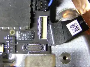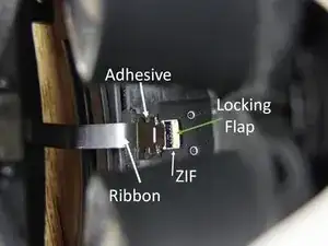 Поднимите небольшой чёрный фиксатор на ZIF‑разъёме и выньте гибкий кабель.