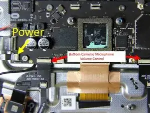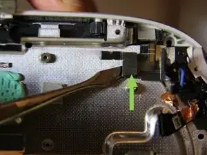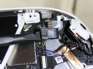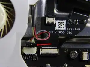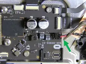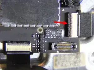 Стрелка указывает на антенну Bluetooth. Чтобы отключить, смотрите шаг 5 руководства. Перейдите к изображению 2. Чтобы отсоединить разъём, подденьте тонким антистатическим инструментом или пинцетом металлическую шейку разъёма и поднимите его прямо вверх от платы.
