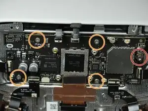Удалите семь винтов P000 из держателя динамика и порта USB.