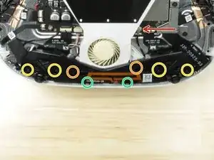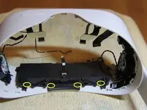 Начните со снятия шести винтов T2, которые крепят внутреннюю облицовку гарнитуры к передней части.