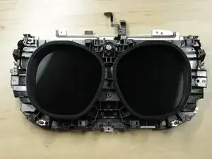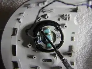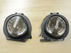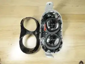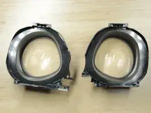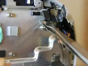 Маленькие металлические язычки удерживают направляющие, по которым двигаются линзы. Снятие направляющих открывает доступ к дисплею.