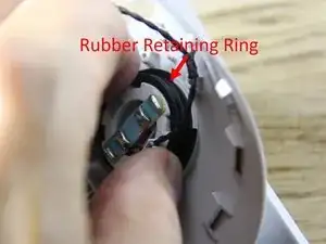 Рычаг и динамик проходят через гарнитуру и фиксируются резиновым фиксатором.