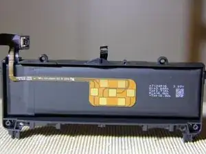 Питание батареи проходит к среднему каркасу через этот кабель. Кабель имеет металлическую пластину внизу и приклеен к среднему каркасу. Отделите металлическую пластину на нижней части разъёма от среднего каркаса.