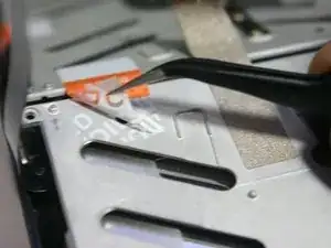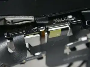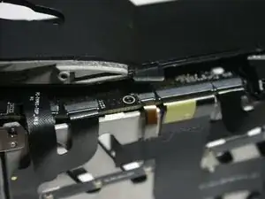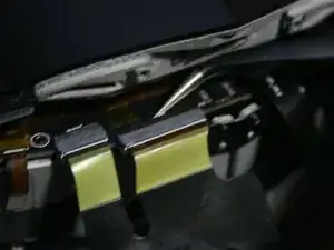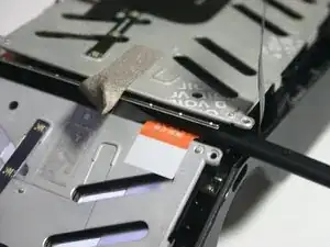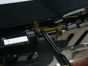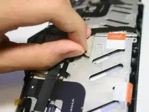 Поднимите металлический кронштейн опоры дисплея, учитывая ленточный кабель, соединяющийся с дисплеем по внешнему краю.