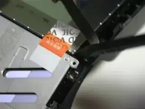 Используйте пластиковую лопатку, чтобы приподнять дисплей за маленькое отверстие возле угла.