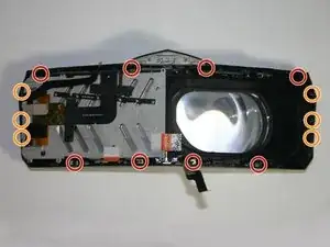 Отверткой Phillips отверните восемь винтов, крепящих металлическую опору дисплея.
