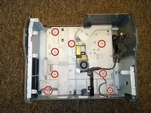 Если хотите отделить базовое шасси от корпуса, удалите эти 8 серебристых винтов Philips #2, 8 мм, чтобы отделить внутренний кожух от внешнего.