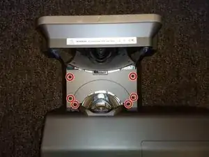 Удалите эти 4 серебристых винта Philips #2, 9 мм, удерживающих основную оптическую систему.