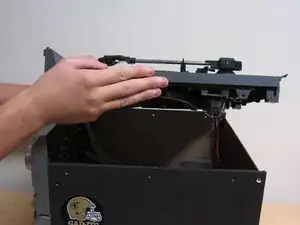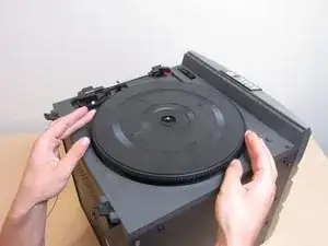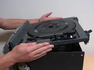 Поднимите крышку, чтобы получить доступ к вертушке.