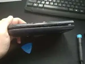 Используйте инструмент для поддевания, чтобы вставить лопатку в бок и затем переместить её вниз, пока она не откроется.