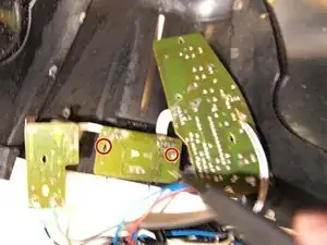 Снимите два винта, удерживающие нижнюю печатную плату.