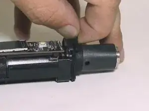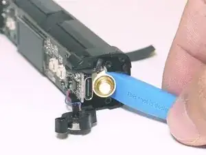 Используйте лопатку, чтобы полностью снять золотой контакт аккумулятора с корпуса