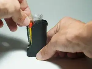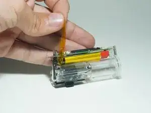 Отклейте каптон-ленту с аккумулятора и прозрачного пластика