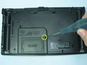 Отвинтите двенадцать винтов длиной 11,8 мм, показанных на изображении, с помощью крестовой отвёртки №00. Винты расположены на задней стороне калькулятора.