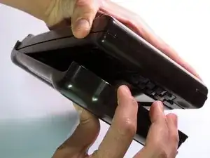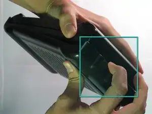 Инструментом для открытия iPod потяните за обе стороны прямоугольного модуля, удерживая остальную часть калькулятора плоско на поверхности передней стороной вниз.