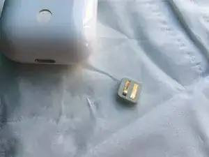 После полного снятия открутите винт отверткой и подключите кабель у основания наушников к кабелю с разъёмом Lightning ниже.