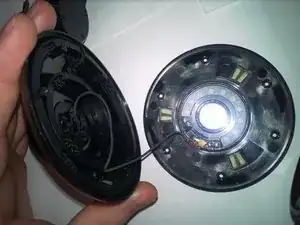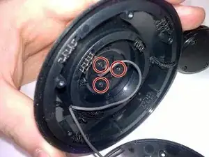Хотя эту деталь можно собрать обратно только в одном положении, вы можете упростить себе задачу, сделав отметку, показывающую совмещение корпуса динамика с чашкой наушника.