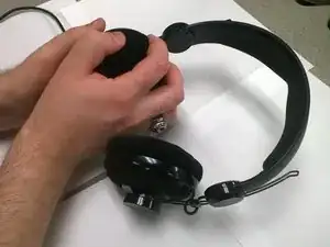 Снимите левую амбушюру, поворачивая её против часовой стрелки насколько это возможно.