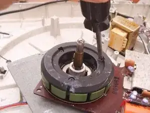 На многих прямоприводных моделях статорная обмотка мотора припаяна к контрольной плате. Вал и узел подшипника мотора, вместе с задней крышкой, могут также крепиться к плате длинными винтами, проходящими через статор. В этом случае можно снять плату вместе с валом, подшипником и задней крышкой.