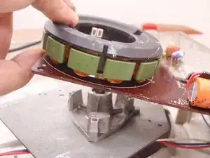 Поверните контрольную плату вместе с моторным узлом, чтобы получить доступ к винтам на верхней части статорной сборки мотора.