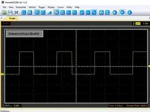 При нагруженном выходе осциллографом на управляющем выводе MOSFET-транзистора нужно наблюдать сигнал, как на третьем изображении.