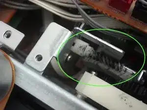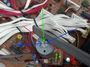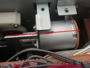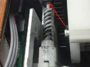 Сняв верхнюю крышку, найдите мотор извлечения. Он расположен в передней средней части устройства рядом с главным транспортом. Шестерня, закреплённая на валу этого мотора, является источником проблемы.