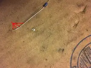Пока клей сохнет, найдите старую металлическую деталь с припоем — проводник, резистор, конденсатор или диод — и придайте ей форму радиуса сломанной шестерни. Затем залудите этот кусочек припоем, чтобы улучшить теплопроводность.