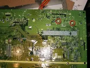 Отсоедините провода, идущие от платы DM к главному шасси. На этом телевизоре было четыре отдельных жгута проводов: DA, VA, DB и PF. Эти маркировки не важны для данного ремонта. Но они четко обозначены на разъемах, а также на логической плате, к которой они подключены. Это поможет идентифицировать их правильное положение для сборки.