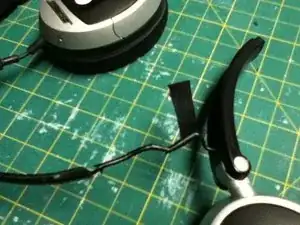 После осмотра провода внутри вы можете заметить трещины на углах, где провода изгибаются, когда наушники сложены. Я отрезал тонкую полоску изоленты для усиления.