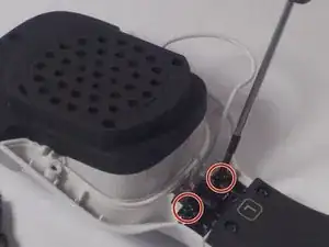 Крепко удерживайте черную амбушюру одной рукой и белую рамку динамика другой рукой.